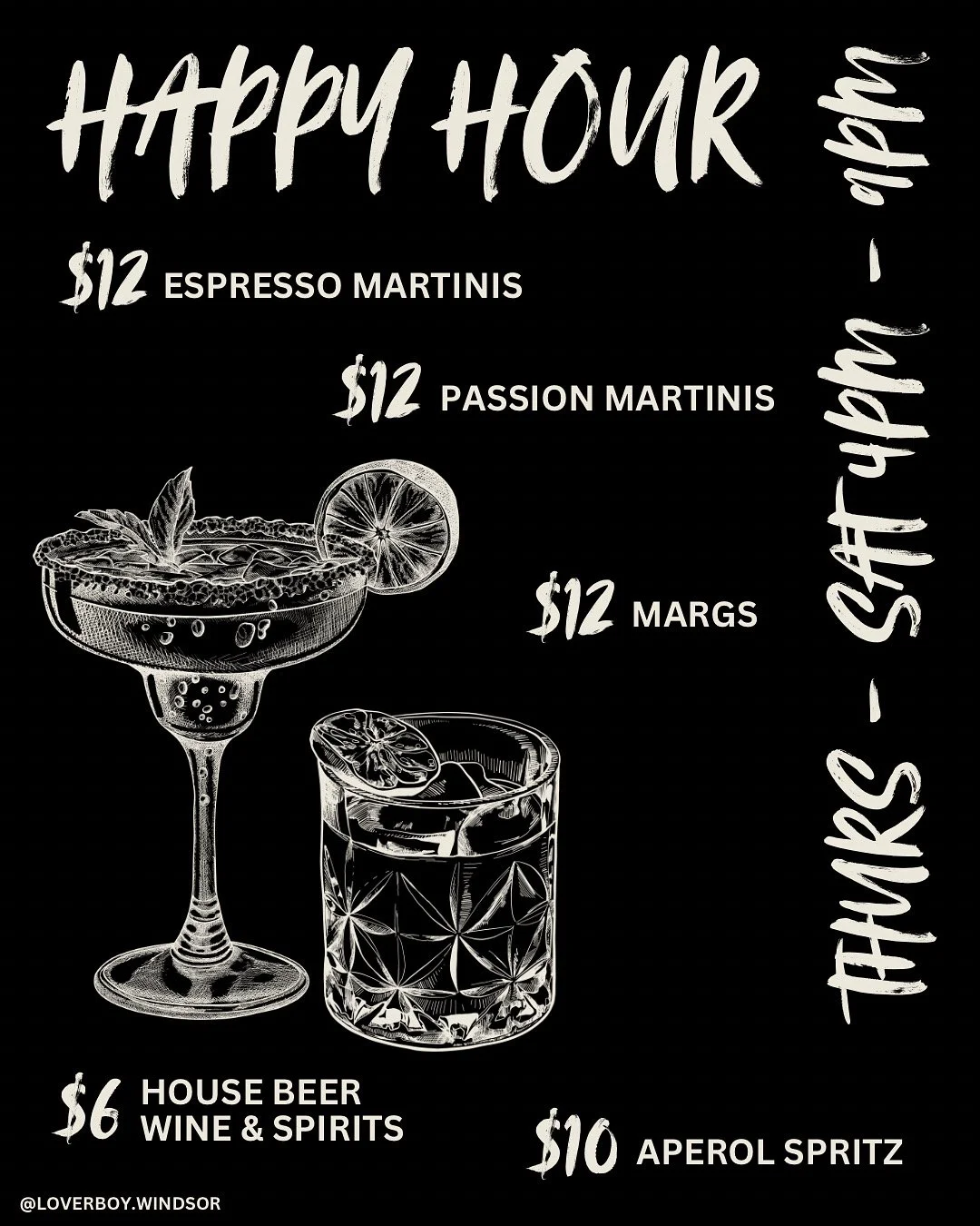 Kick off your night the right way — Thursday, Friday and Saturday 4pm till 9pm with drinks that don’t break the bank and vibes that don’t quit. Loverboy’s Happy Hour is serving up cheeky prices and killer cocktails, making it the perfect warm-up for whatever comes next. Come thirsty. Leave happy.
